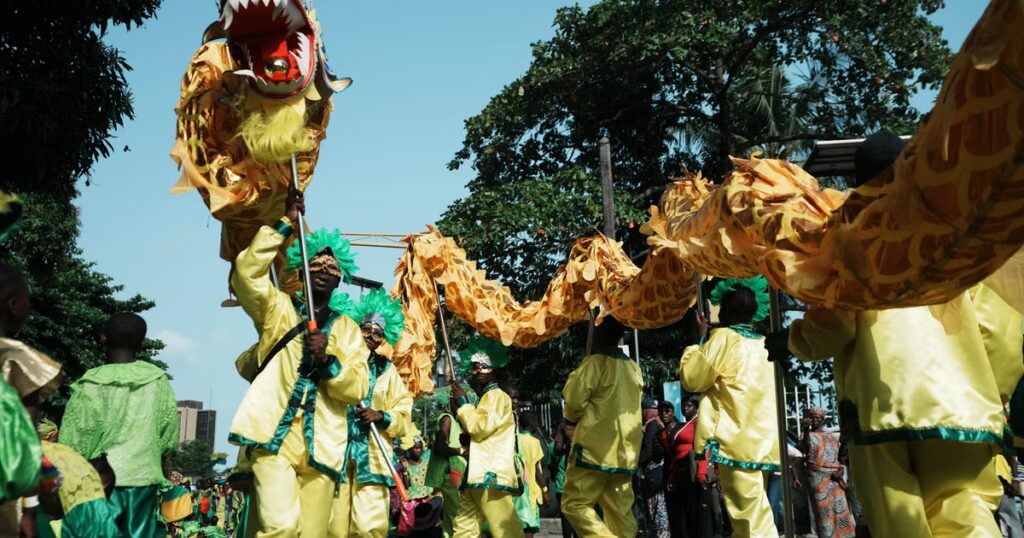 The Fanti Carnival stands as a living monument to the “Aguda” – Afro-Brazilians who, having been granted their freedom after the abolition of the slave trade in the nineteenth century, returned home to West Africa. This rich heritage still influences the architecture, cuisine, and lifestyle of Lagos today. This year’s event has featured seven large groups, including Brazilian Campos Carreta, Lafiaji Fanti, Olowogbowo, and Okepopo, as they celebrate their ethnic origins with dancing and colourful processions.